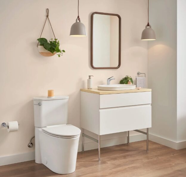 - Smooth, skirted sides conceal the trapway
