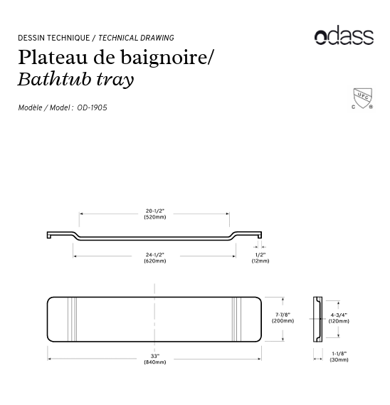 7 7/8″ (20cm) x 33″ (84cm) x 1 1/8″ (3cm)