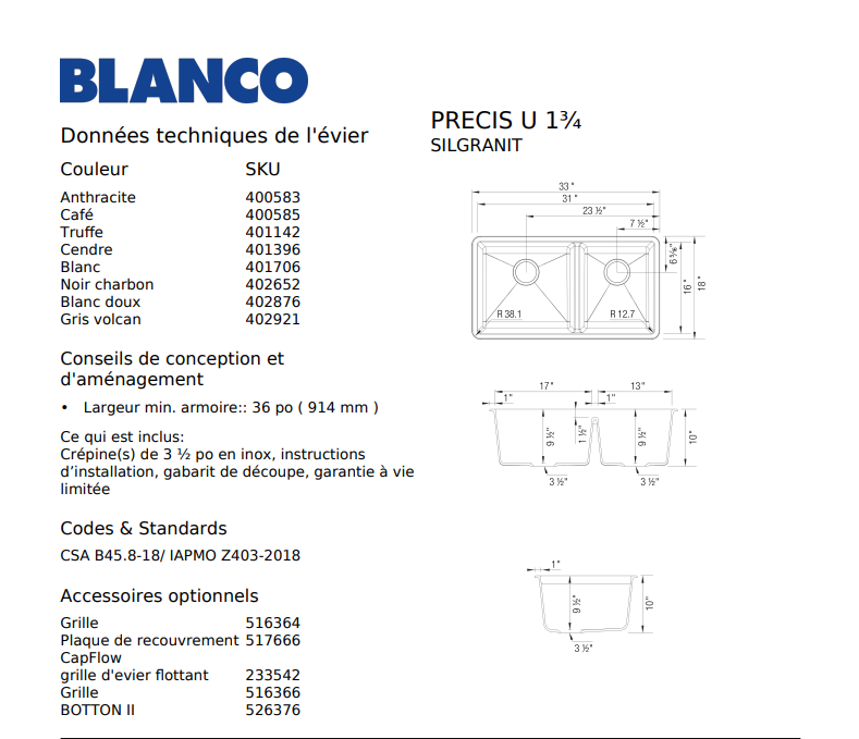 Blanco precis u 1 3/4, coal black (402652)