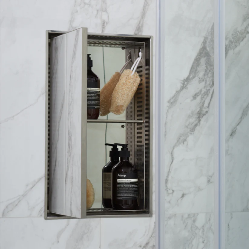 - A-shaped hooks for hanging accessories (loofah, razor, etc)