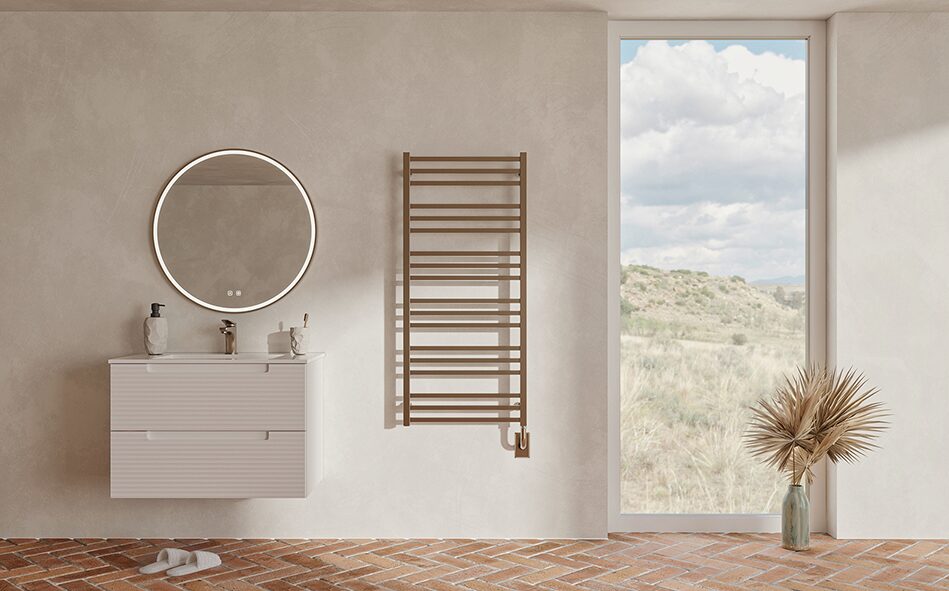 • Anodized aluminum frame in matte black, brushed gold, or brushed bronze