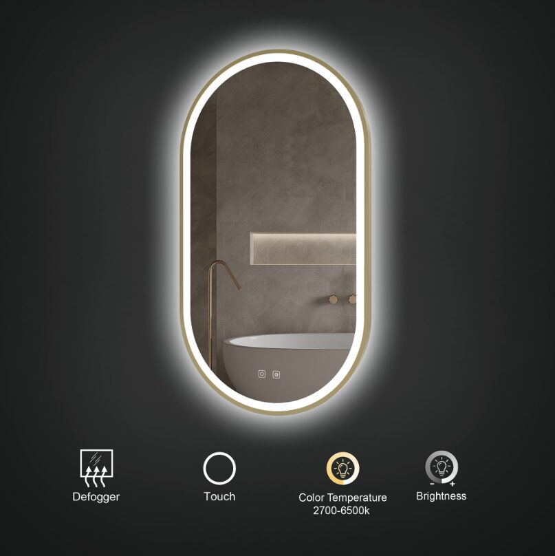 ICO Kiara 20 x 36 LED mirror – brushed bronze