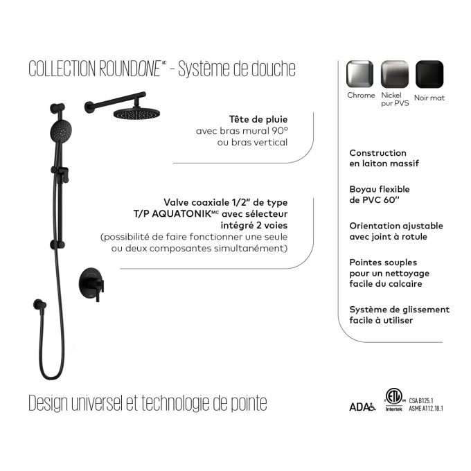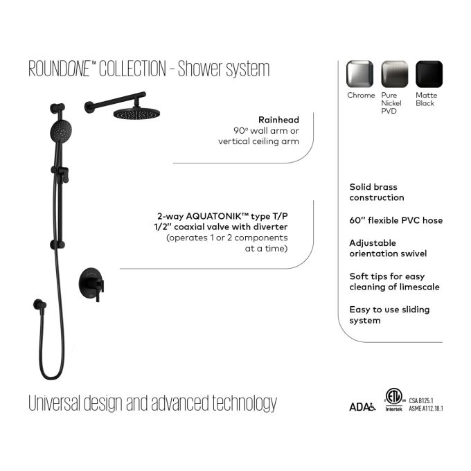 KALIA ROUNDONE TCD1 Thermostatic/pressure balance shower kit -Wall Arm- Chrome-Coaxial-VALVE INCLUDED (Available while supplies last)