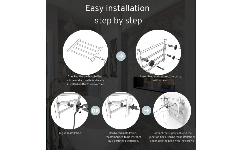 - Heated towel rack with 4 round bars