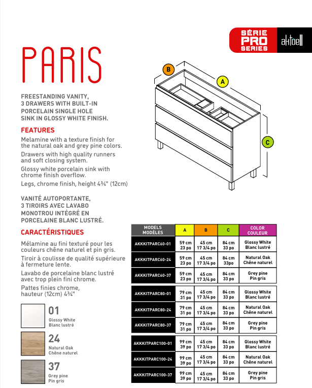 AKTUELL PARIS 60 23″ VANITY WITH WHITE PORCELAIN SINK IN NATURAL OAK