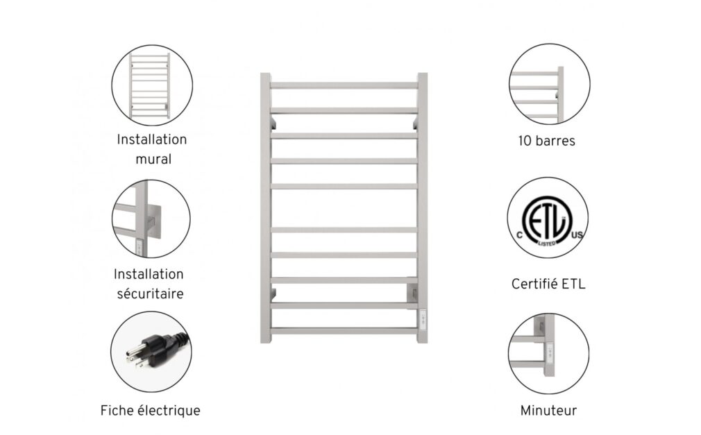 - Heated towel rack with 10 square bars