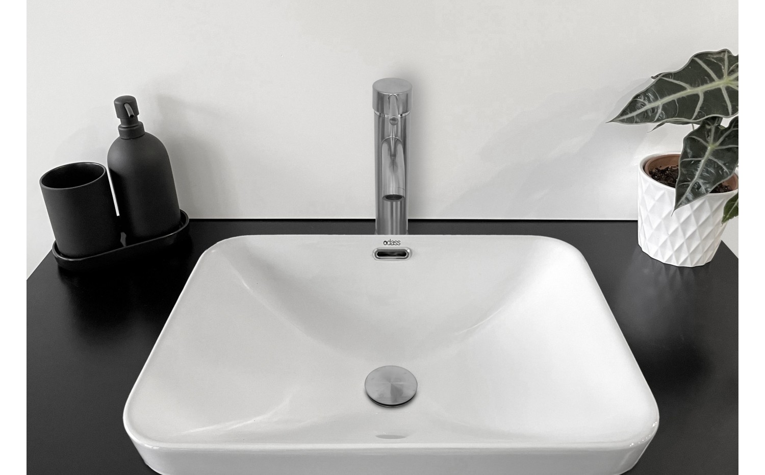 - Rectangular shape and rounded corners with space for a faucet
