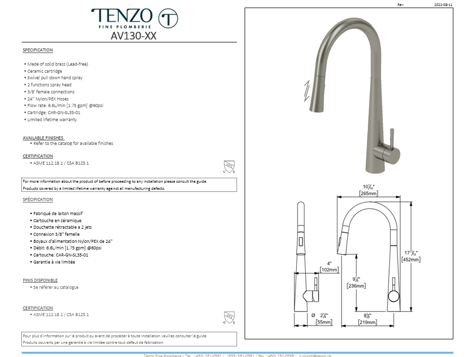 - Made of solid brass (Lead-free)