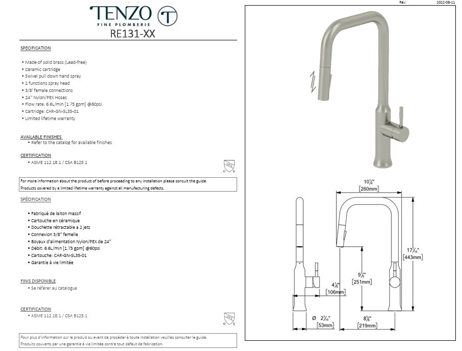 - Made of solid brass (Lead-free)