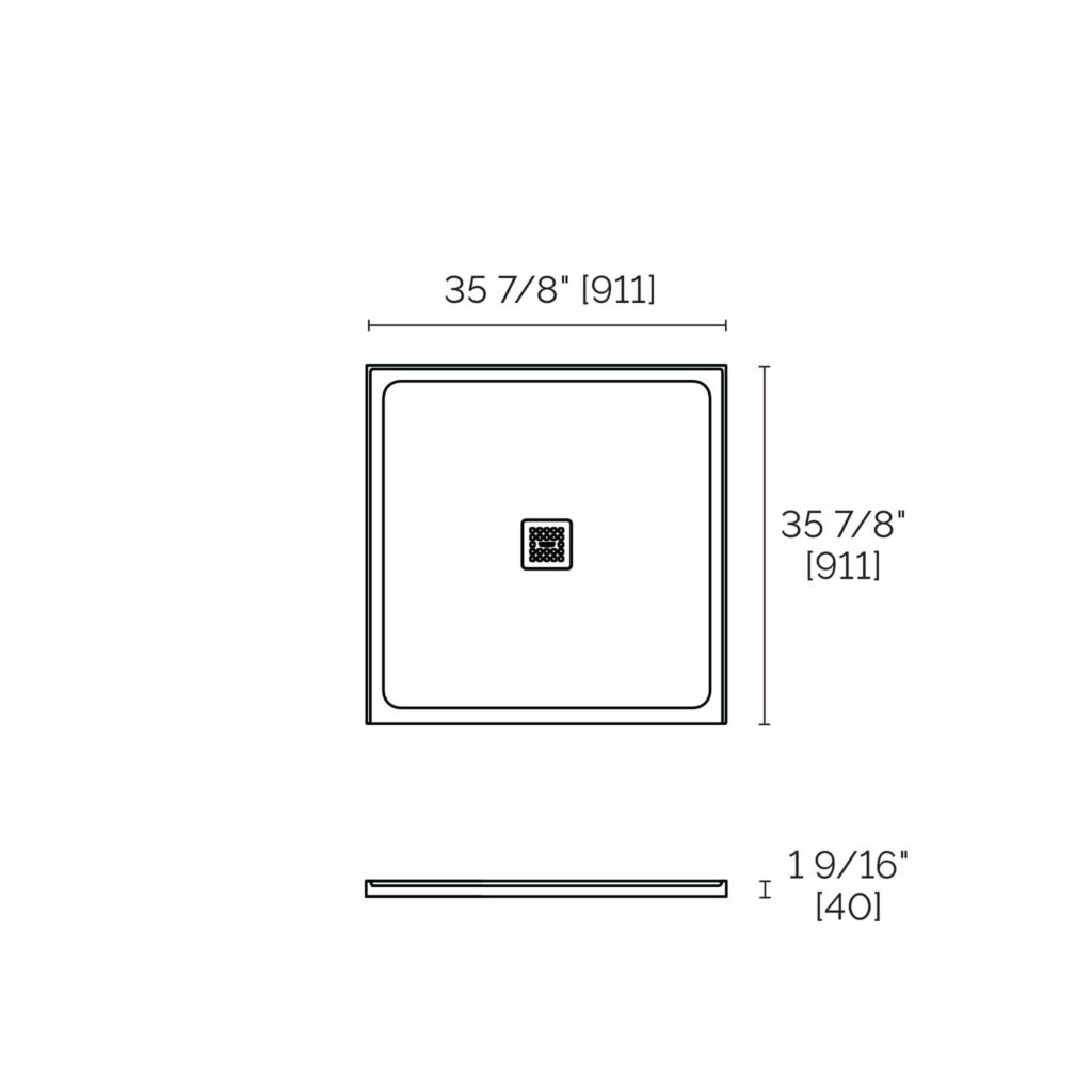 STONETOUCH 36″ WATERPROOF™ SHOWER BASE IN ALCOVE IN GREY MATTE