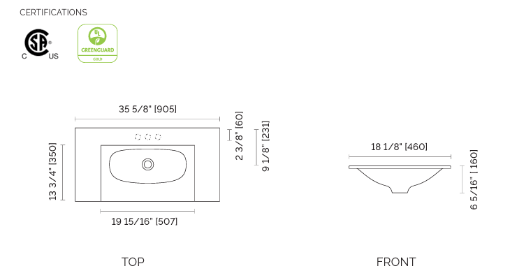 STONETOUCH NEVE 36″ WHITE MATTE MINERALSOLID VANITY TOP – 1 HOLE ( FOR 36″ RUNWAY & DEVILLE VANITY )