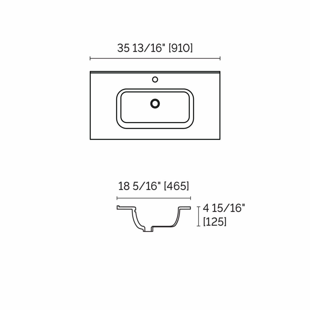 STONETOUCH PORTO 36″ VANITY TOP IN WHITE PORCELAINE – 1 HOLE ( FOR RUNWAY & DEVILLE 36″ VANITY)