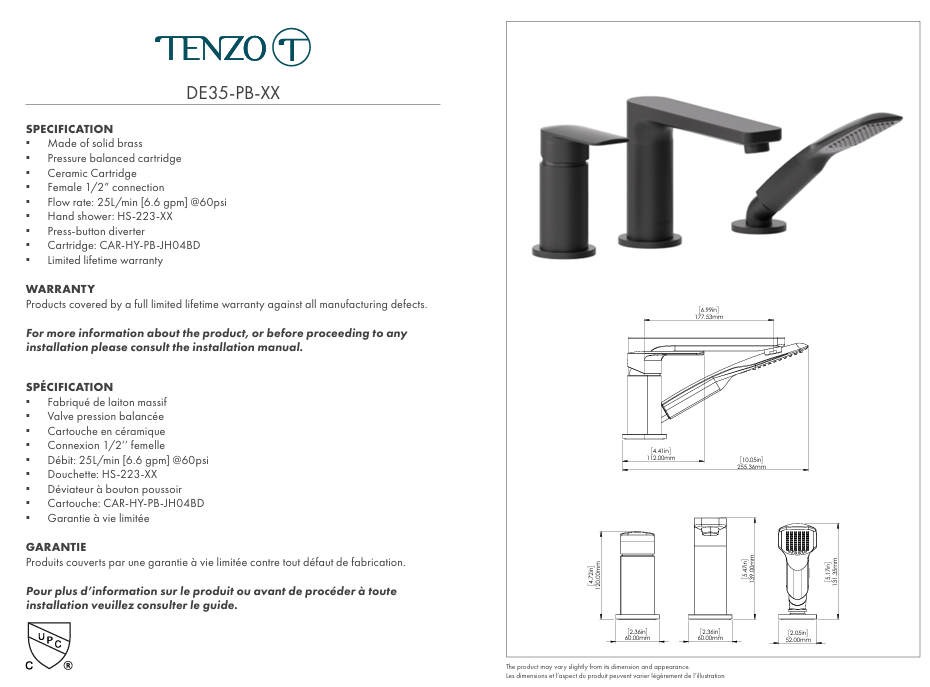 • Hand shower: HS-223-XX