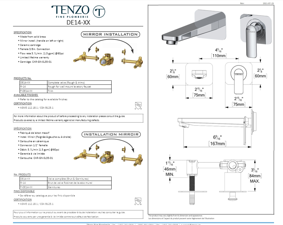TENZO Delano Wall mount lavatory faucet Drain Not Included Chrome