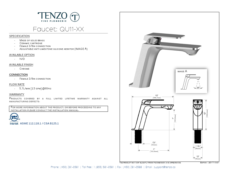TENZO Quantum Single hole lavatory faucet Chrome, drain not included