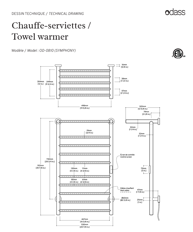 With its light curves, Symphony is suitable for any type of decor. In addition to its everywhere look it is made of high quality stainless steel, molded in one piece and offered with a built-in timer with various temperature possible (30, 35, 40, 45, 50, 55, 60 °C) and heating time (1H, 2H, 3H, 4H, 5H, 6H, 7H, 8H, ON, OFF).