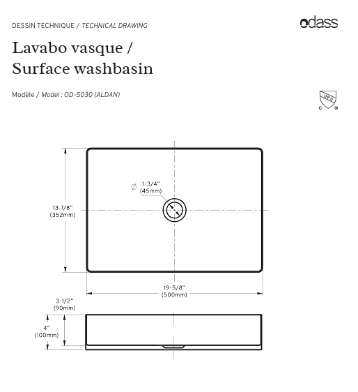 - Drain without overflow included of the same finish as the washbasin
