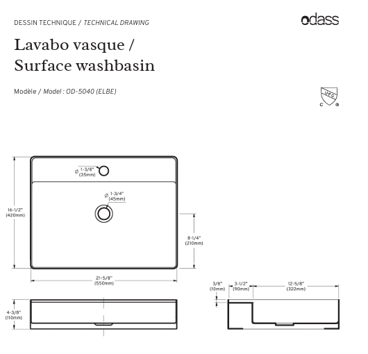 21 5/8″ (550 mm) x 16 1/2″ (420 mm) x 4 3/8″ (110 mm)