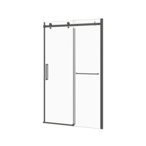 Shower door Bellini 2.0 in alcove, 60″, towel bar included, sliding door, matte white frame and clear glass, Zitta collection