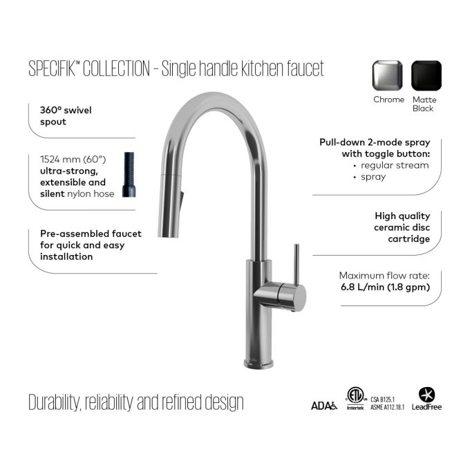 KALIA SPEC Specifik Robinet de cuisine monocommande INOX PVS