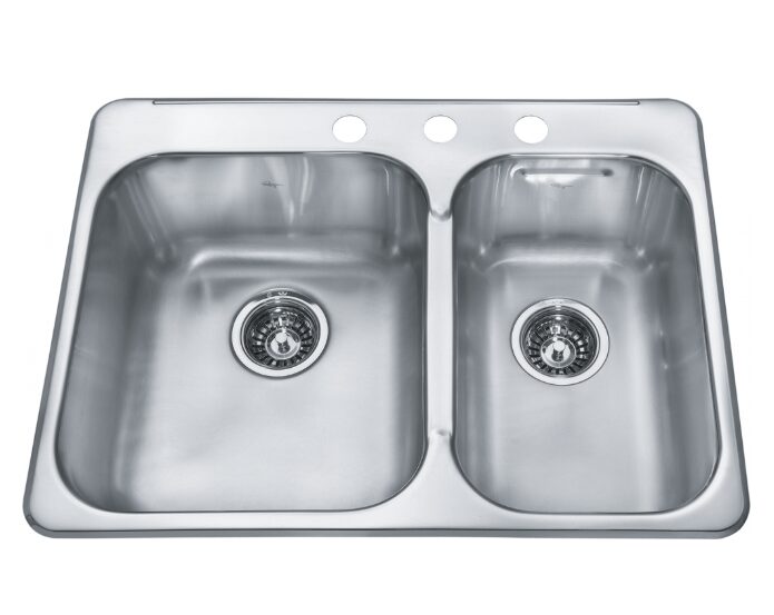 KINDRED Reginox Évier de cuisine en acier inoxydable à deux cuvettes à encastrer avec 3 trous de robinet, 27,25 po x 20,56 po.