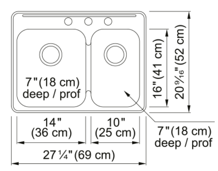 Évier de cuisine en acier inoxydable à deux cuvettes à encastrer avec 3 trous de robinet, 27,25 po x 20,56 po. L’amélioration d’une maison ne doit pas être une source de tracas. Optez pour la simplicité en choisissant les éviers à montage par le dessus Reginox, conçus pour vous aider à mettre à niveau votre espace aussi rapidement que possible, et ce, avec un minimum de perturbations. Faciles à installer, ces éviers à montage par le dessus, avec leurs coins arrondis, sont étudiés pour un nettoyage rapide et simple. Le système simplifié d’attaches EZ Torque vous permet de « Déposer et visser » votre évier en place, puis de le verrouiller en toute sécurité au comptoir. Les éviers à double cuvette vous permettent facilement d’utiliser l’une ou l’autre des cuvettes pour des tâches différentes. Préparer les repas d’un côté et laver les plats de l’autre. Des patins insonorisants placés à des points clés éliminent les sons provenant des éclaboussures d’eau. Accessoires compris : crépine-panier d’évier polie de 3,5 po (2)