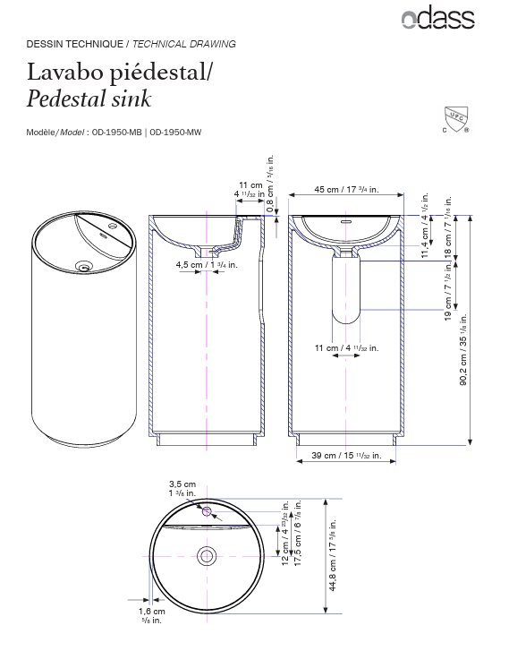 • Lavabo piédestal