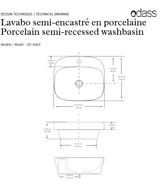 Lavabo semi-encastré 20″ – Ariel blanc
