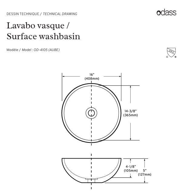 Lavabo vasque 16″ – Aube l