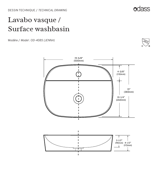 Lavabo vasque 19 5/8″ – Jenna blanc