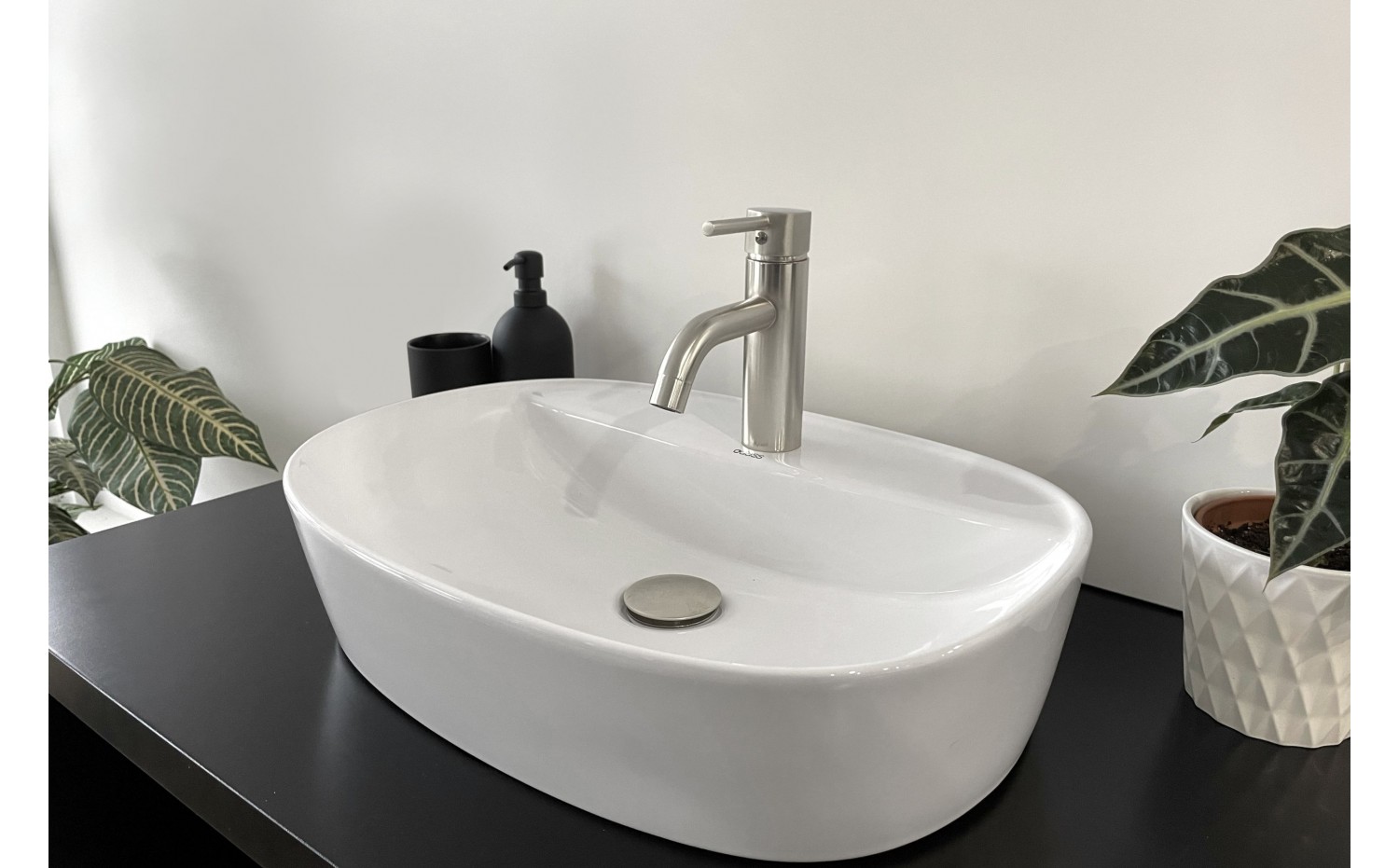 - Forme ovale avec un espace pour le robinet