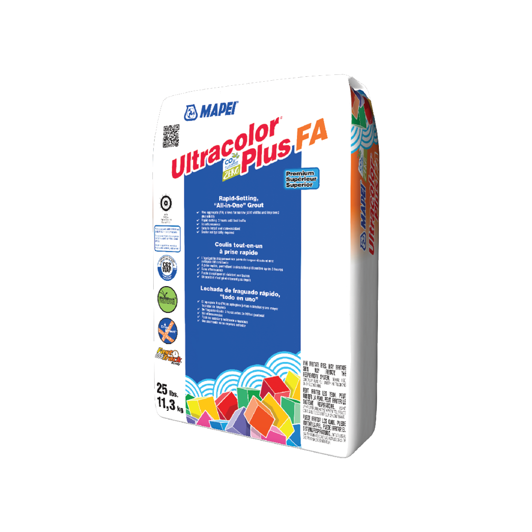 Ultracolor Plus FA – avec la technologie DropEffect et une compensation totale des émissions de CO2 au cours du cycle de vie – est un coulis sans efflorescence, sans retrait, de couleur uniforme, modifié aux polymères, à prise rapide, avec agrégat fin et de qualité ultra supérieure, pour les joints d’une largeur de 1,5 mm à 19 mm (1/16″ à 3/4″). La technologie DropEffect réduit l’absorption en surface afin d’aider à repousser l’eau et les saletés pour les empêcher de pénétrer dans les joints de coulis. Ultracolor Plus FA est spécialement formulé avec la technologie d’hyperhydratation cimentaire (HCT) de MAPEI afin d’éliminer les problèmes courants tels que l’inégalité de la couleur et l’efflorescence. En plus d’offrir une teneur plus élevée en polymères, la technologie d’hyperhydratation cimentaire se traduit par une absorptivité réduite et une meilleure résistance aux taches par rapport aux coulis cimentaires de qualité standard.
