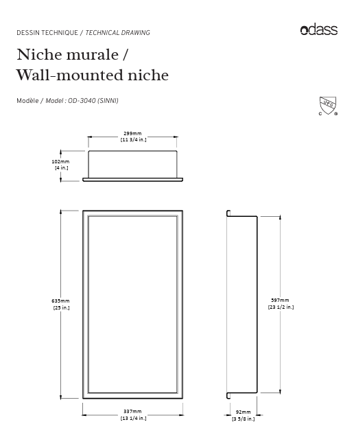 - Conçu pour une installation dans un mur en céramique, en PVC, en acrylique, en polyéthylène, etc.