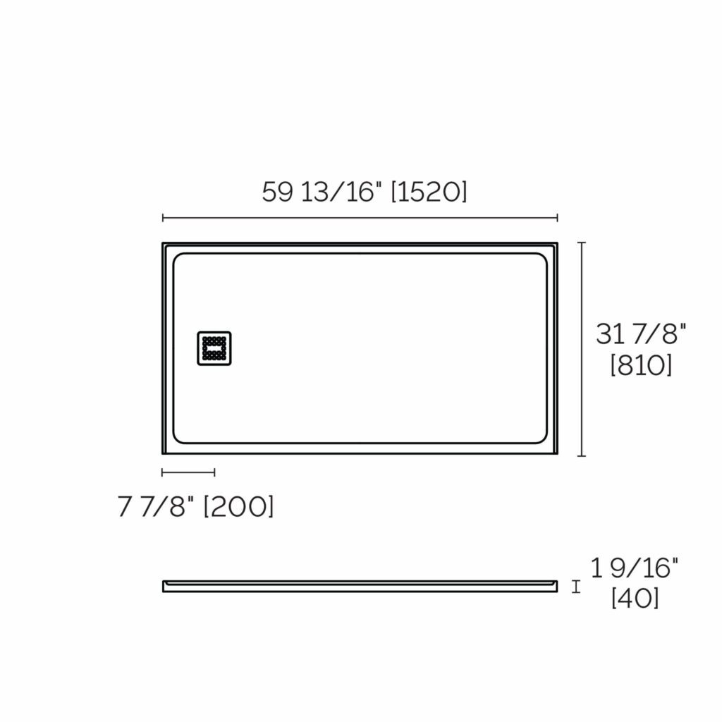 STONETOUCH 60″X32″ WATERPROOF™ BASE DE DOUCHE EN ALCOVE AVEC DRAIN À GAUCHE EN BLANC MAT