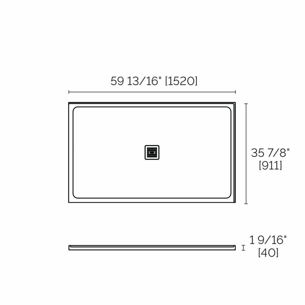 STONETOUCH 60″X36″ BASE DE DOUCHE EN COIN DROIT WATERPROOF™ EN BLANC MAT