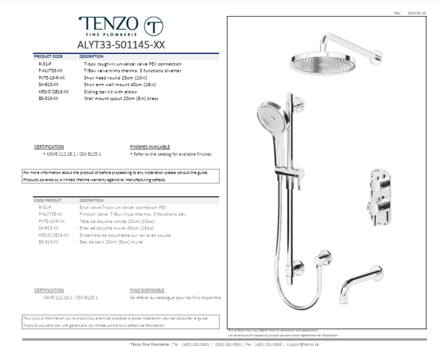 TENZO Alyss, Ensemble de douche T-Box, 3 fonctions Chrome, Valve Incluse
