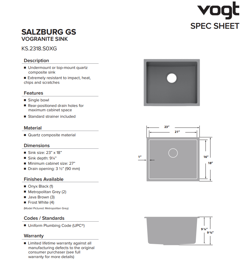 VOGT Salzburg gs vogranite 23x18x9 pg GRIS POUDRE